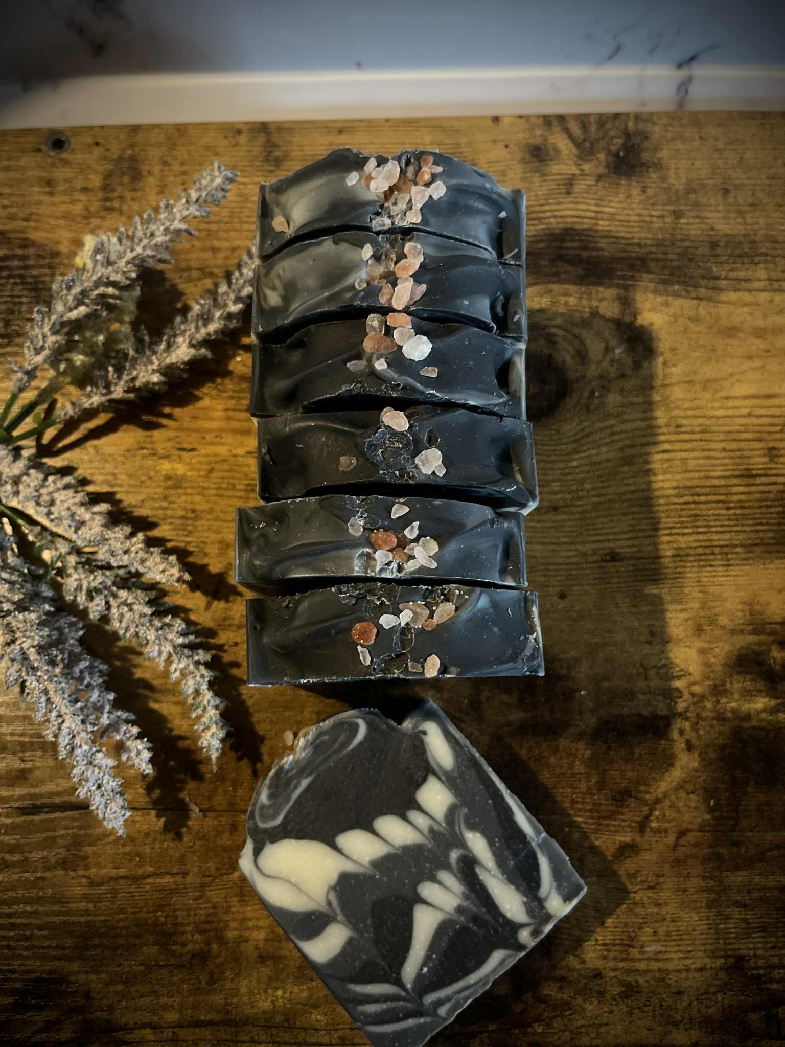 This bold, detoxifying soap bar blends activated charcoal, tea tree, and lavender essential oils for a deep, refreshing cleanse. Ideal for oily or blemish-prone skin, post-workout showers, or those who simply love a crisp, clean scent.